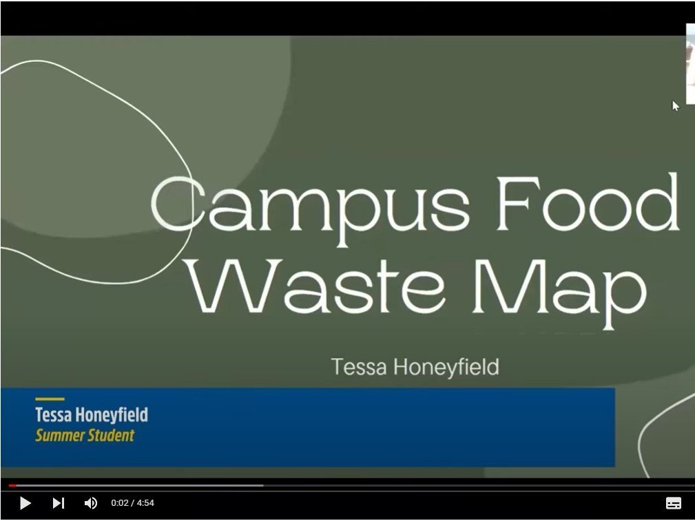 This project was then carried on by Human Nutrition summer student Tessa Honeyfield. Tessa helped create an interactive map of potential locations and volumes of food waste on campus.